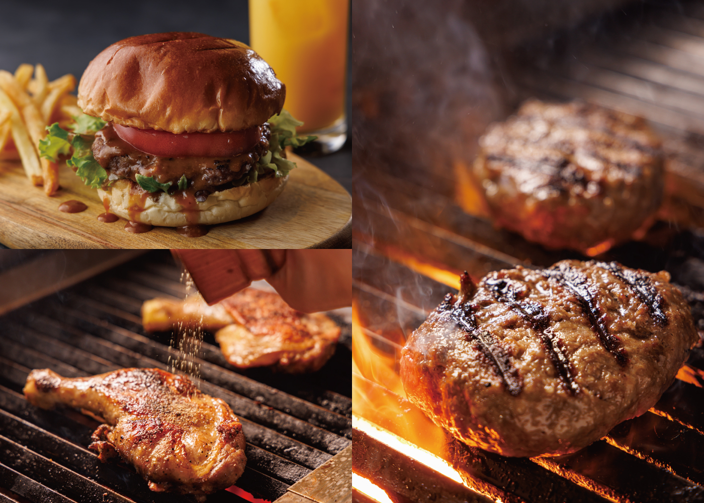 さらに、極めつけとして飛騨牛のミンチを合わせ、旨味のバランスを追求。牛肉100%で焼き上げる、ここでしか味わえない絶品のハンバーグ&ハンバーガーをぜひご賞味ください。